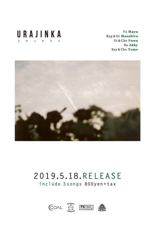 男女混合ボーカル・5ピースバンド【URAJINKA】の3rd ep。