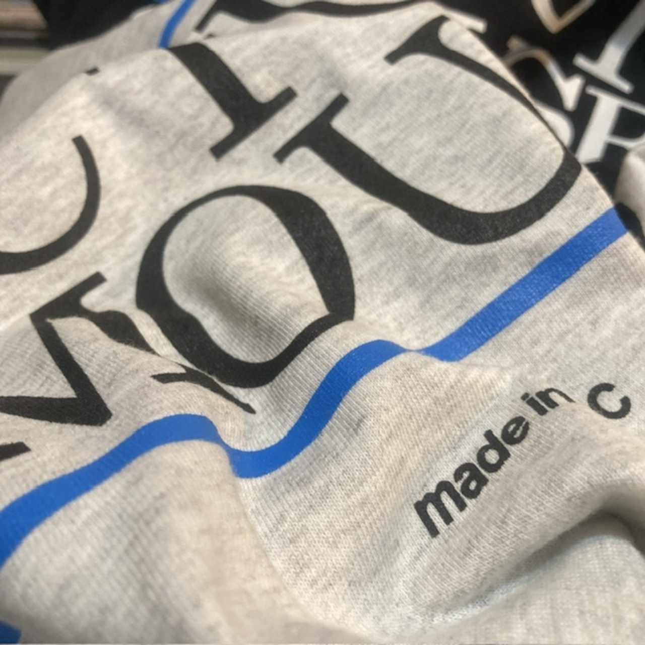 明るめの鮮やかなブルーラインをプリントしました。
